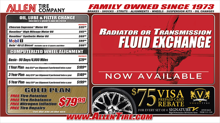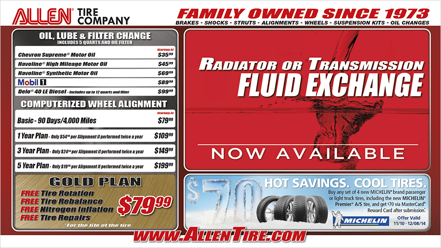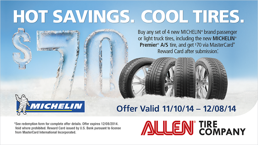 Web images for Allen Tire and TireCrawler.com's BF Goodrich, Michelin, and Vogue Tyre summer and winter promotions. Created while at BMMG.