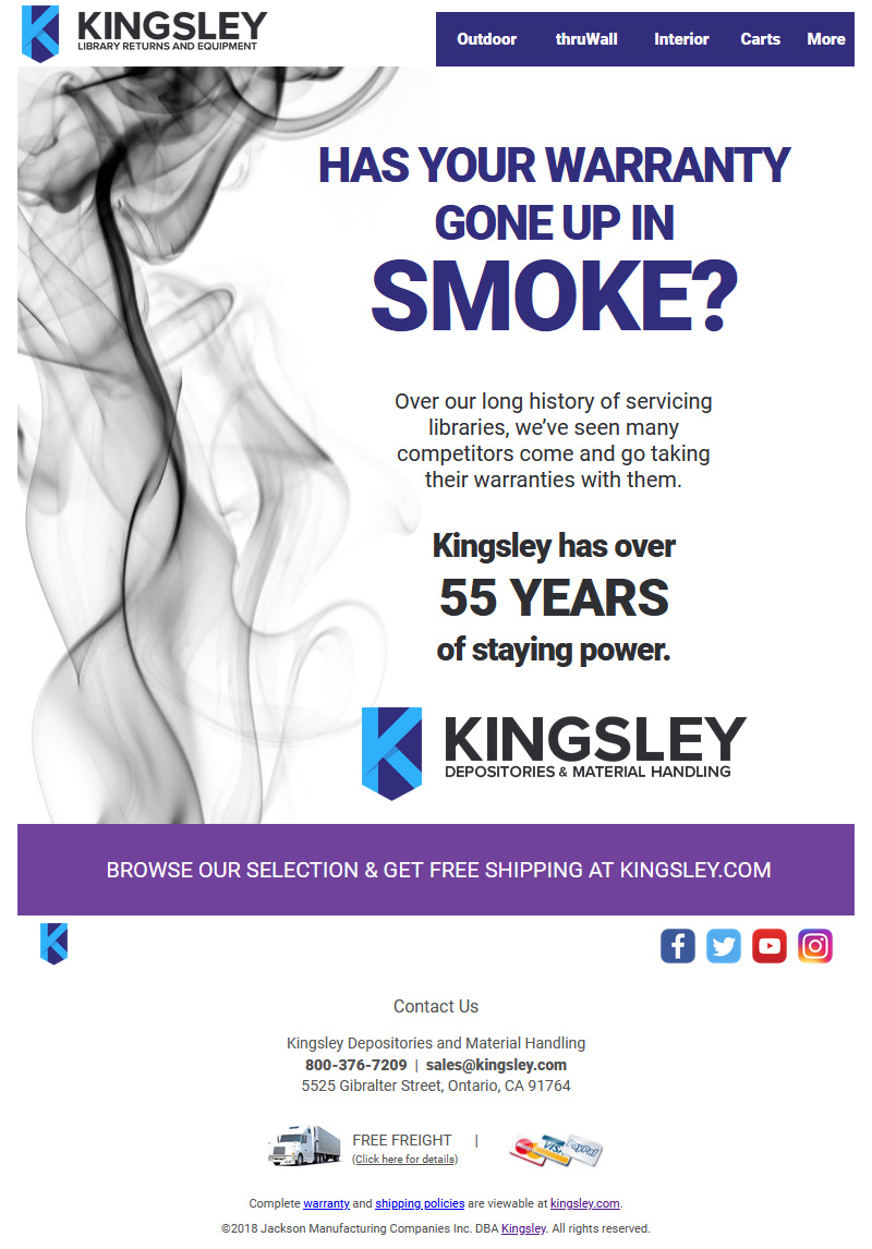 At Kingsley one of the first things I did was design and launch a major brand refresh. I then meticulious retook all of our product photos, edited them, wrote all new product copy, landing pages, and built a custom Magento 2 theme for our new e-commerce site. I did this while maintaining our print and digital advertising as well as social media accounts. I also organized and attended the PLA 2020 trade show in Feburary. A sampling of my work over the years can be found below as well as on kingsley.com
